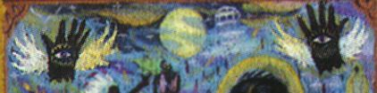 2 May 1999. In response to your request for further references to the Hand/Eye pattern I am attaching 2 files with scans of photos taken from wall painting in the Neolithic town of Catalhuyok in south central Turkey. The paintings are part of the decoration in a shrine dedicated to the Great Mother and her daughter dating about 6100 B.C.E. Your page is fascinating. Thanks for doing it... Cheers.... Maya Heath |